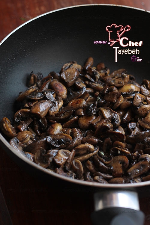 که قارچها دارند کبابی میشن شما آب پاستا رو بار بذارید و پاستا رو بپزید.
