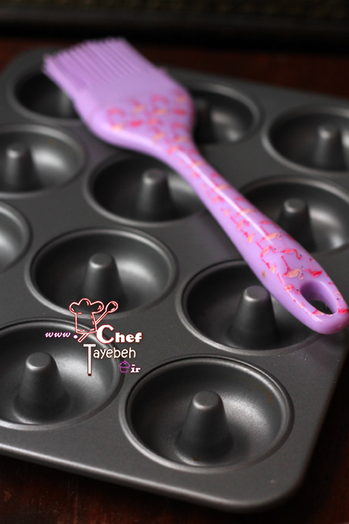 دونات رو درون قالب میریزیم.